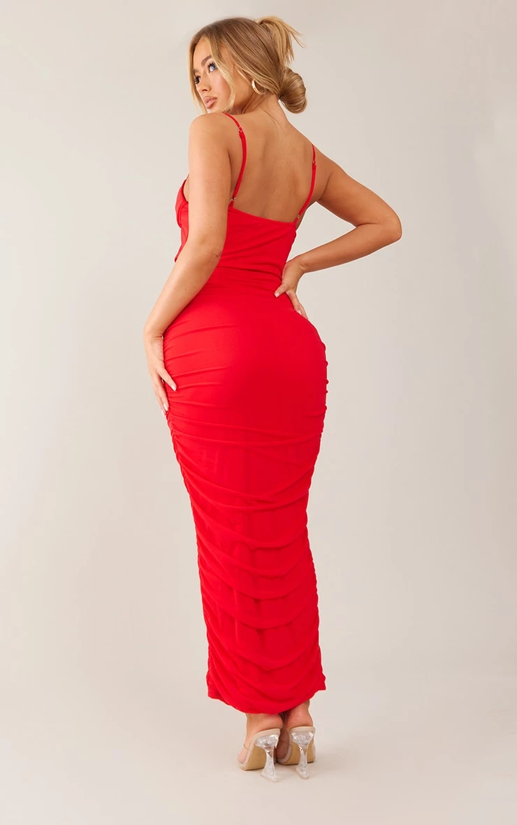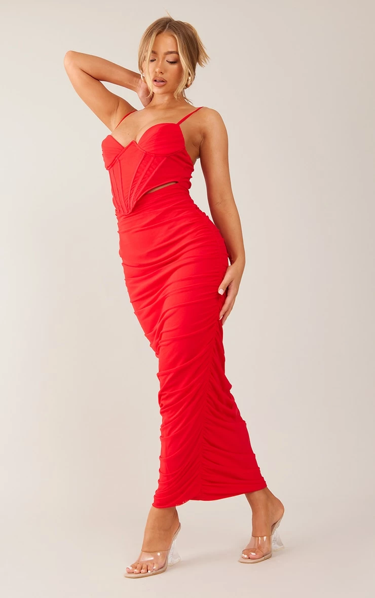 Turn up the heat on your new season wardrobe with this red mesh underwired corset detail strappy midaxi dress, you’re sure to be stealing all the stares whatever your plans. This dress is made using a red mesh material with an underwired corset design that is perfect for showing off your shape, how could you say no? Pair this midaxi dress with slip-on heels and your fave accessories for a look everyone will remember.