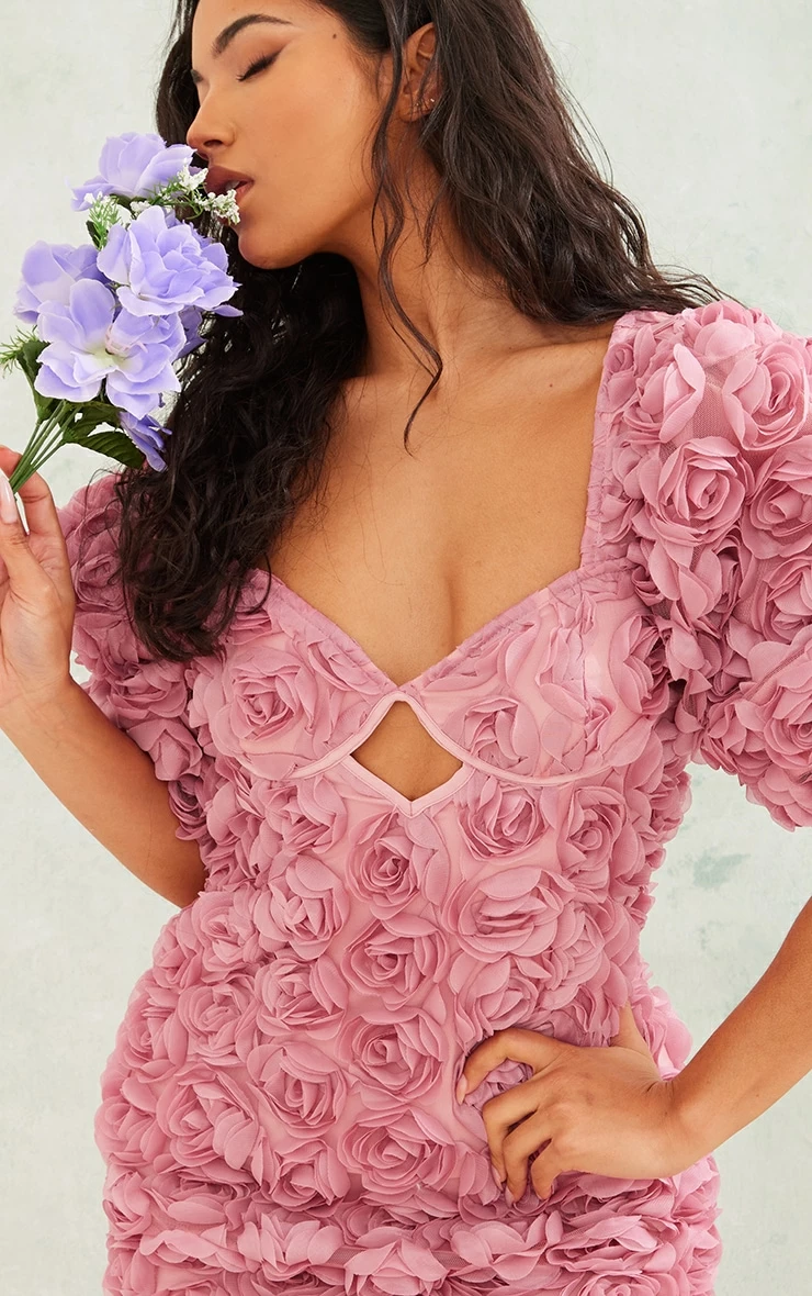 Got a special occasion pencilled into your diary? Then this rose applique puff sleeve cup detail bodycon dress is sure to tick all the boxes. It is made with a rose hue material with a rose applique detail and a bardot design, we’re seriously obsessed. With a structured cup material with a figure-worshipping fit you’re sure to be showing off your confident side. Wear with your fave heels and simple accessories for an instant glam finish.