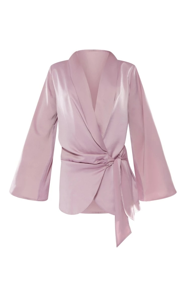 Get ready to look all kinds of glam in this unreal blazer dress. Featuring a rose hue material with a tie detail, long sleeves and an extreme plunge neckline. Wear with slip-on heels and your fave accessories for a dreamy date night look.