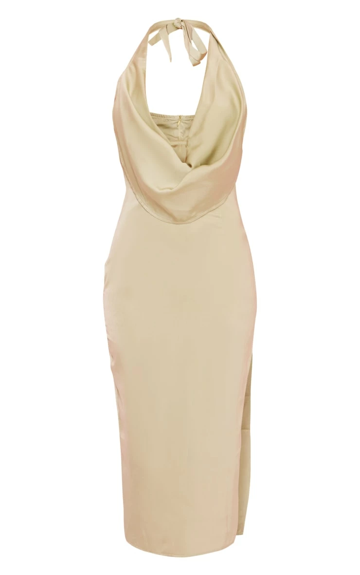 Got a special occasion in the diary doll? Then this sage green satin cowl halter strap midaxi dress is sure to tick all the boxes. Its sage green satin material adds all the glam vibes whilst its cowl neck design is seriously chic. This midaxi dress is sure to get everyone talking with its halter strap giving you that plunging neckline and showing off your unreal figure. Simply add tie-up heels and your fave accessories for a flawless finish.