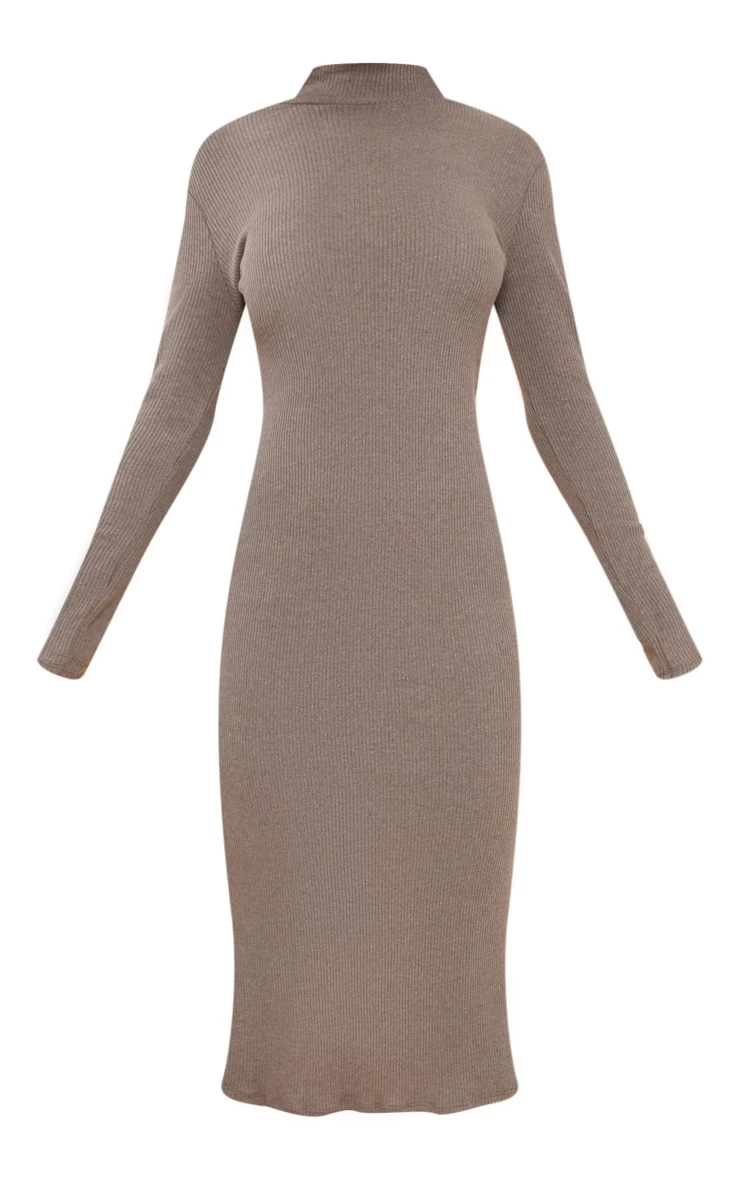 Take your look to a whole new level with this unreal sage khaki rib high neck long sleeve maxi dress. Made using a sage khaki hue rib material with a high neck long sleeves and a figure-flattering fit that will hug your unreal shape, what more could you ask for? It’s the perfect piece for your new season collection. For a look that is sure to steal the stares pair with knee high boots, gold hue accessories and a mini bag.