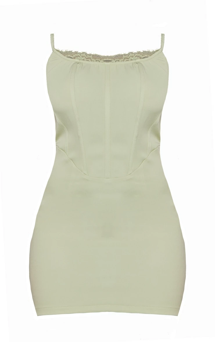 Stand out from the crowd in this sage woven corset lace trim strappy bodycon dress. With a figure-flattering style and a corset fit, this bodycon dress is sure to show off your shape in all the right places. This strappy dress is made from a dreamy sage hue with luxe lace trim detailing, what more could you want? Style with clear strap heels and a mini bag to complete the look that will have heads turning all night long.