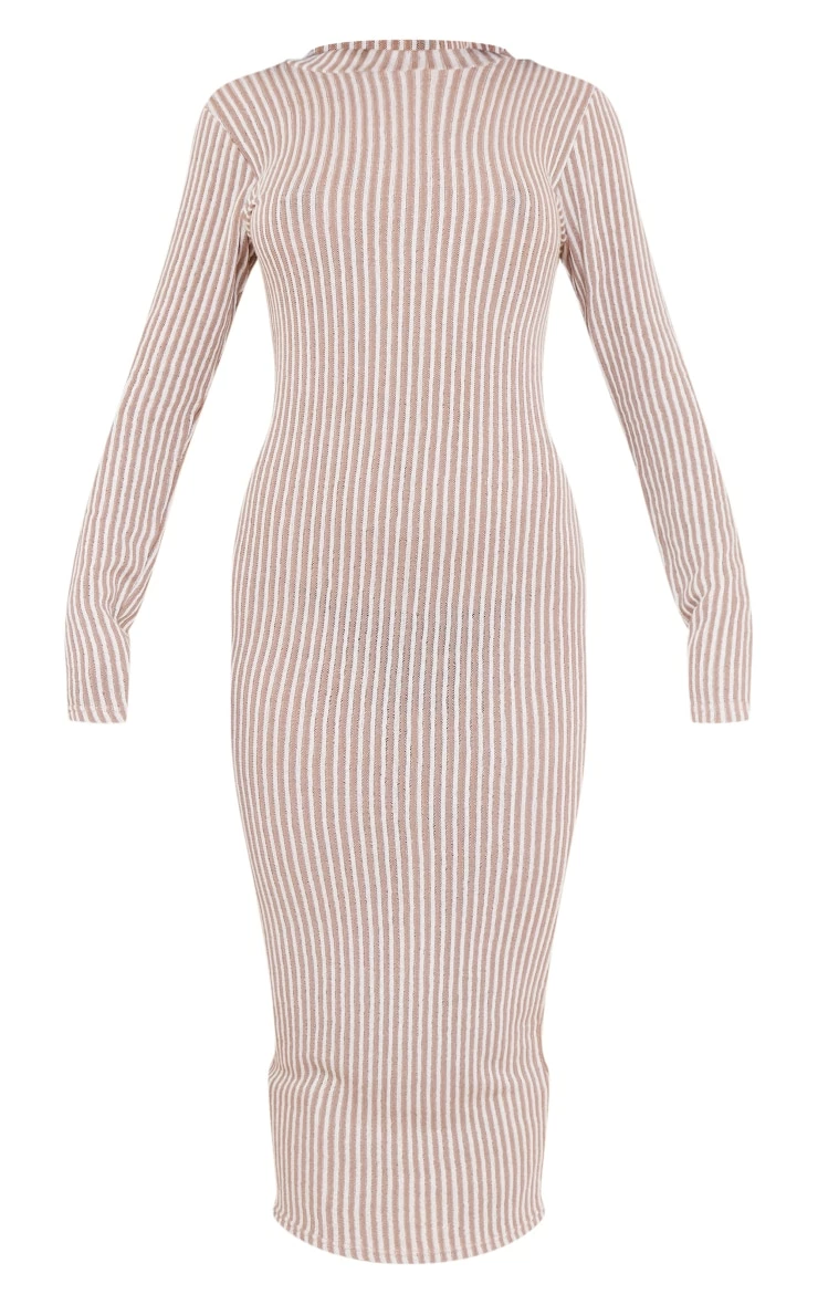 Enter the new season in style with this midaxi dress. Featuring a sand hue rib two tone material with a high neckline and a midaxi length, we’re obsessed. Style with heeled boots and a mini bag to complete the look.