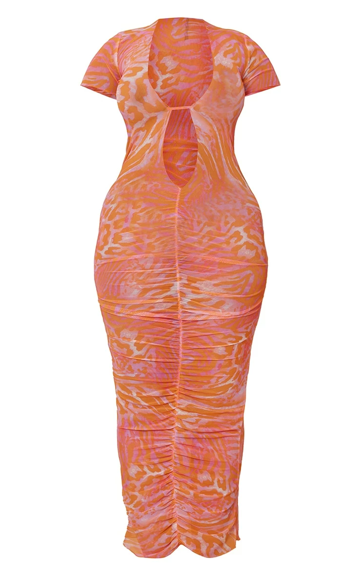 Get ready to have heads turning for all the right reasons in this dress. Featuring an abstract leopard print mesh material with a plunge neckline and a midaxi length, we’re obsessed. Just add slip-on heels and a clutch bag for a night with the dolls.