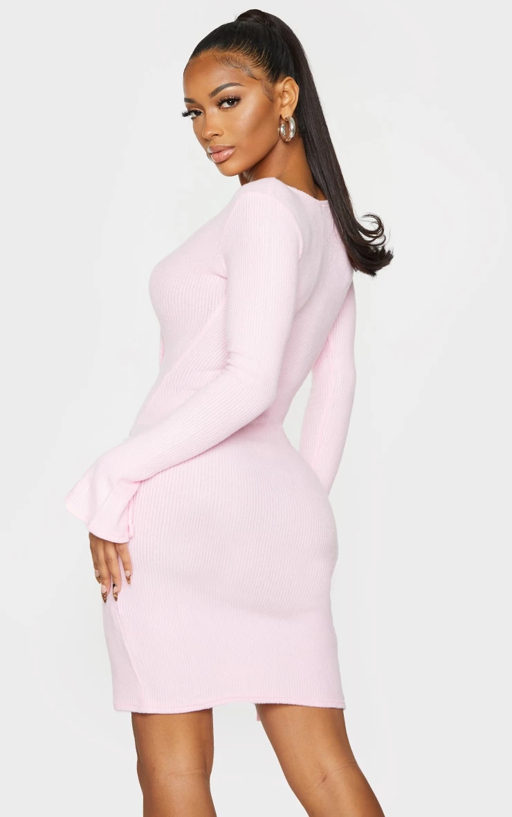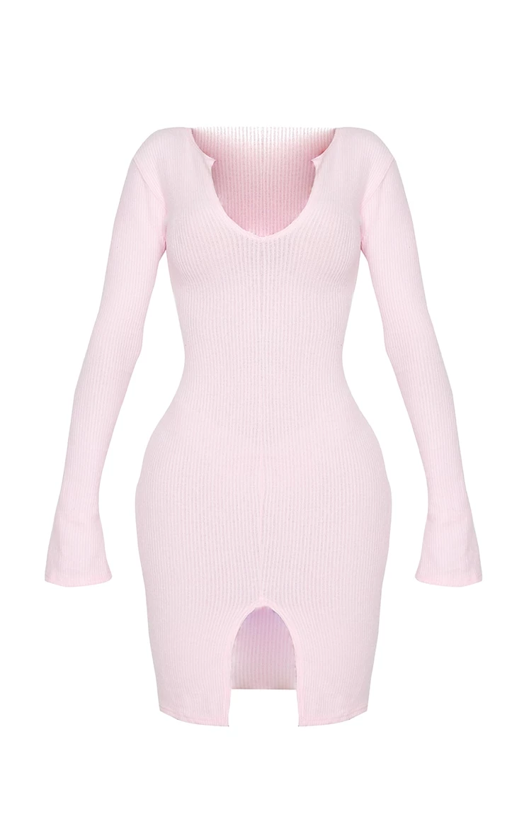 Add some seriously dreamy pastel tones to your weekend wardrobe with this figure-flattering dress. Featuring a baby pink brushed rib fabric and split sleeve detail. Style with strappy heels, hoops and a shoulder bag to finish the look.