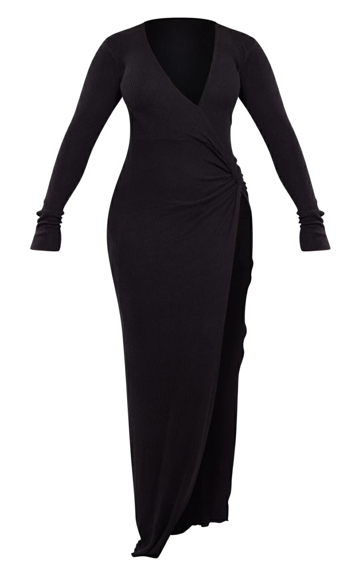 Take glam to a whole new level with this midaxi dress. Featuring a black brushed rib material with a long sleeves, a wrap design and a flattering fit, we are in love. Wear with knee high boots and gold accessories for a vibe that will get you noticed.