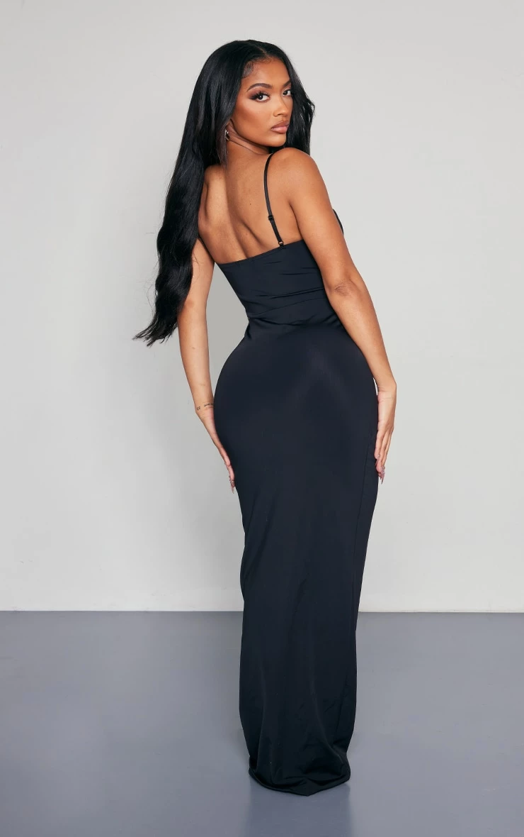 Get ready to show off your shape with this figure-worshipping shape black lace detail matte sculpt maxi dress. This unreal dress is made from a black material with a lace detail for some sultry vibes you won’t be able to resist. With a matte sculpt design and a maxi dress, we are obsessed. Team with some clear heels and your fave accessories to complete the look.