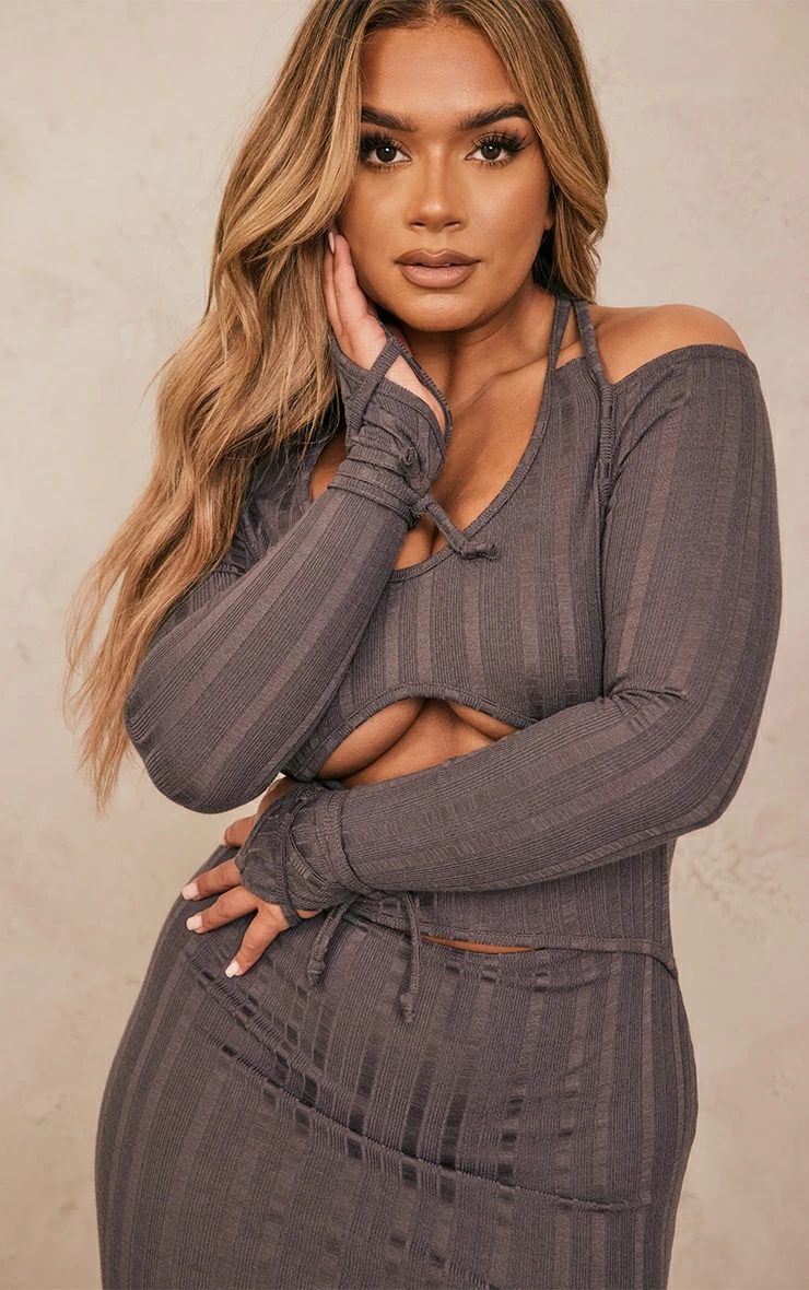 Get ready to earn all the likes in this unreal shape charcoal long sleeve cutout midi dress, whatever your plans, this unreal piece will be at the top of your hit list. With a charcoal hue material, long sleeves and a cut out design you’re sure to be feeling your best doll. Pair with your fave sneakers and minimal accessories for a look we just can’t get enough of.
