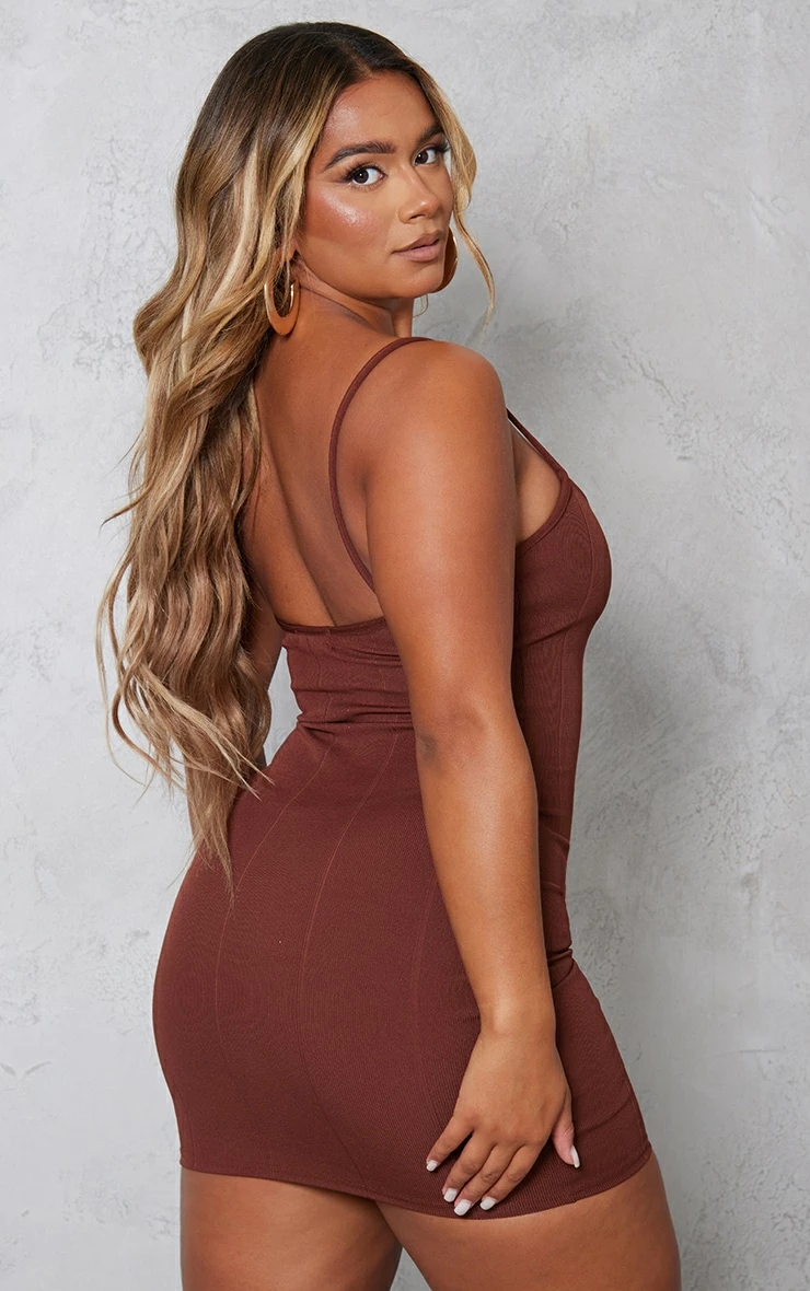 You are sure to take centre stage with this unreal piece. Featuring a chocolate brown bandage material with a strappy design and a bodycon fit, what’s not to love? Wear with gold accessories and slip on heels to secure the new season vibe.
