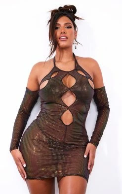 Take styling to a whole new level with this staple dress doll. Featuring a brown glitter mesh material with a cutout front, a bardot design and a flattering fit, we are in love. Simply pair with high heels, statement accessories and a mini bag for a vibe that will get you noticed.