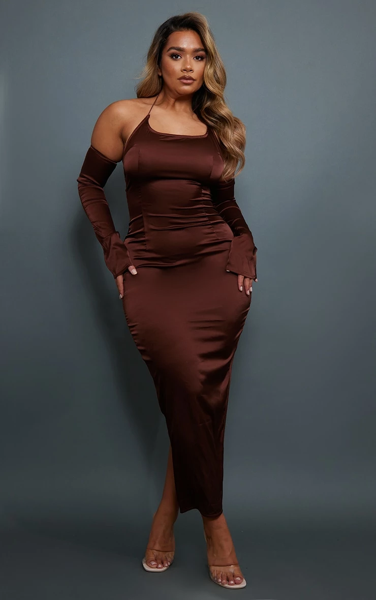 Got a special occasion pencilled into your diary? Then this shape chocolate brown satin halterneck bardot sleeve midi dress is sure to be at the top of your wish list. With a dreamy chocolate brown satin material, a halterneck design and a bardot style you’re sure to have all eyes on you. Pair this midi shape dress with clear heels and simple accessories for a look we can’t get enough of.