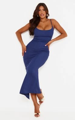 This dress is sure to add some glam vibes to your look. Featuring a navy bandage material with thin straps and a midaxi length, how could you resist? Wear with your highest heels and simple accessories to really wow.