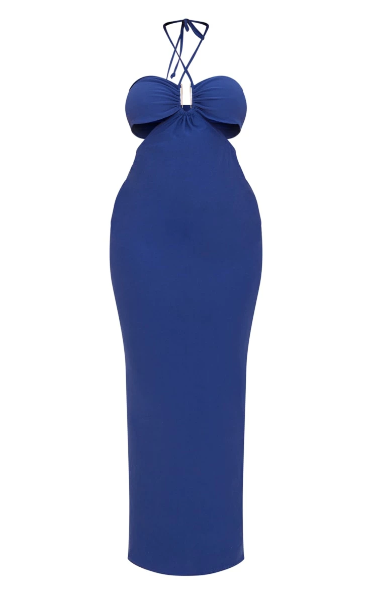 We’re obsessed with this shape navy ring detail cut-out maxi dress for adding some glam vibes to your weekend plans doll. Whether you have a special occasion in the diary or just plans with the dolls, this shape maxi dress is the answer to all your what-to-wear dilemmas. With a navy hue material, a cut-out design, a halter neckline and ring detail, what’s not to love? Simply add clear heels and a shoulder bag for a dreamy finish.