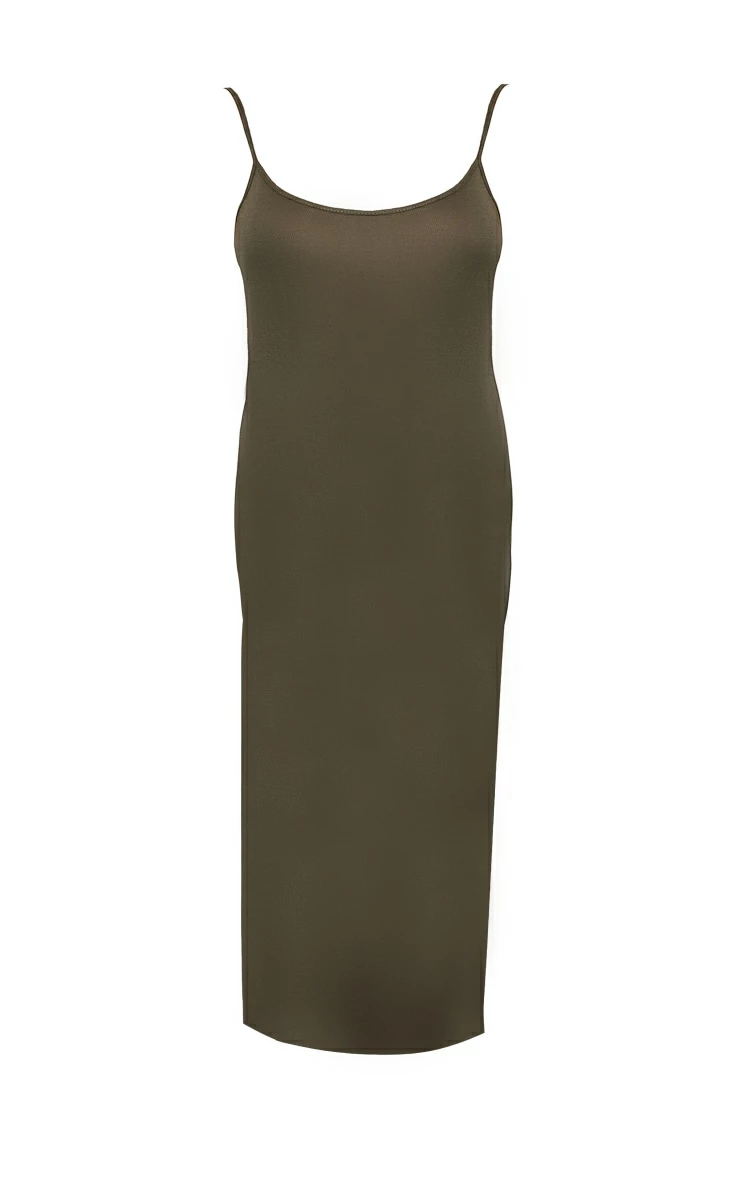 Be the centre of attention this weekend with this shape olive khaki jersey strappy maxi dress. This shape maxi dress is simple but chic with its olive khaki jersey material and strappy design. Whether you have brunch with the dolls or a glam date this shape maxi dress is the perfect piece for the occasion. Go for an effortlessly dreamy look with clear heels and gold accessories.