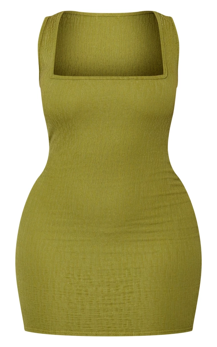 You are sure to be the cause of conversation with this dress doll. Featuring an olive textured material with a square neck and a bodycon fit, we are in love. Wear with gold accessories and slip-on heels for a look that will make them stare.