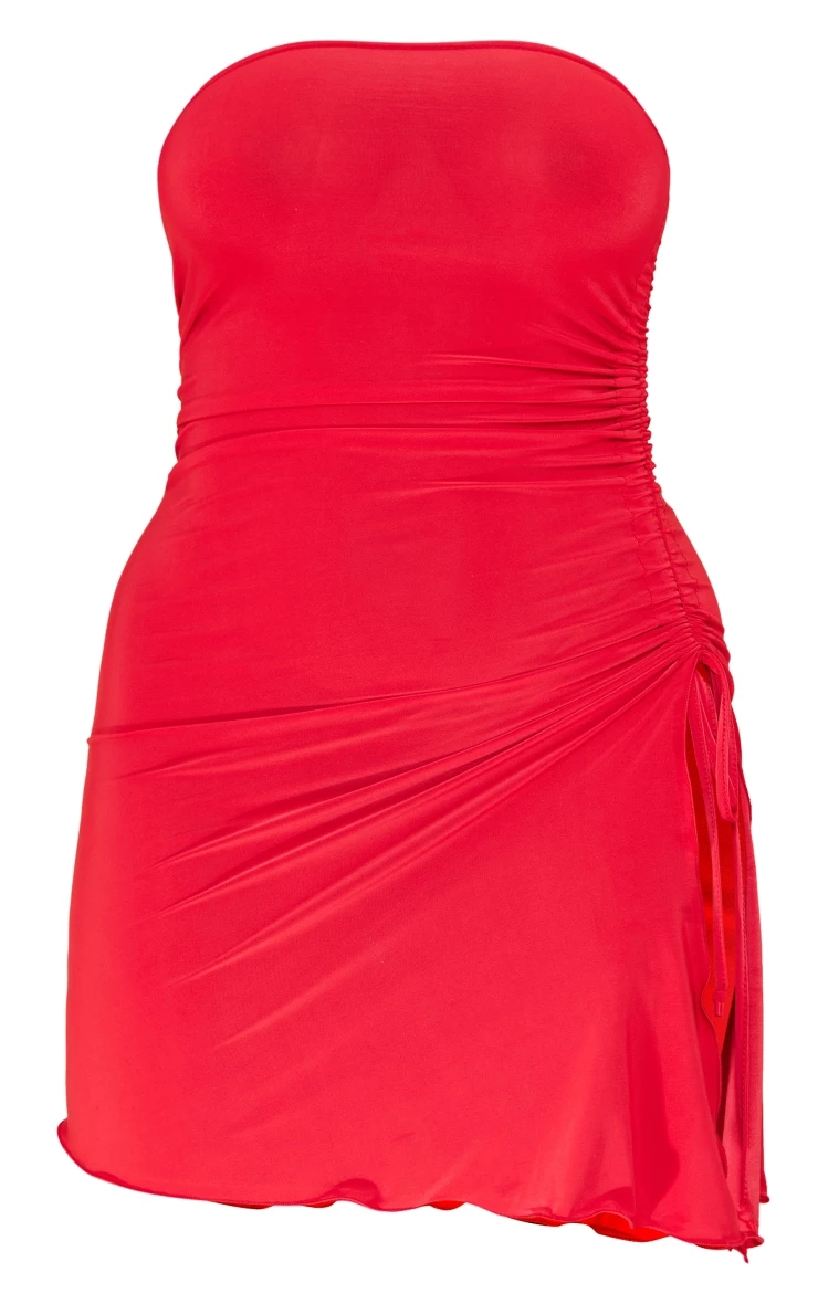 Look all kinds of fierce in this statement dress doll. Featuring a red slinky material with a bandeau neckline, a ruched side design and a frill hem, we’re obsessed. Just add heels and gold accessories for a look that will get you noticed.