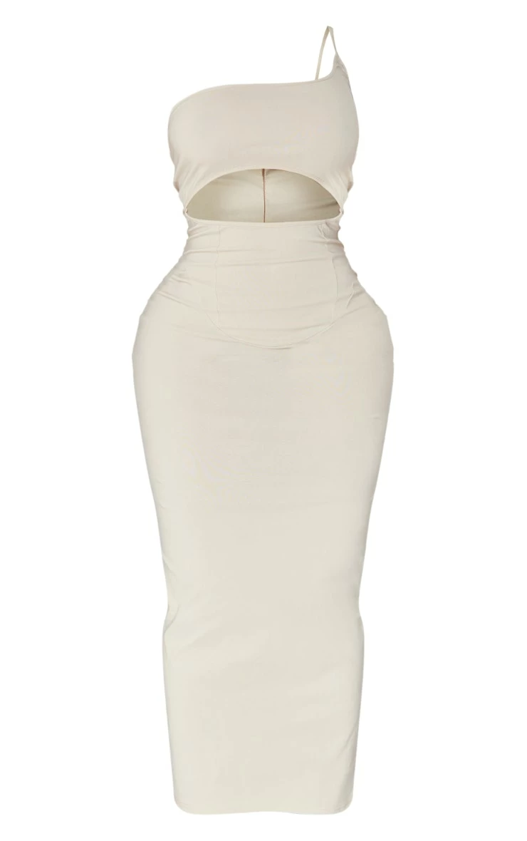 Make a statement in this dress doll. Featuring a stone woven stretch material with a one shoulder style, a cut-out design and a midaxi length, what’s not to love? Add your clear high heels and chunky gold hoops for a look you’re sure to love.