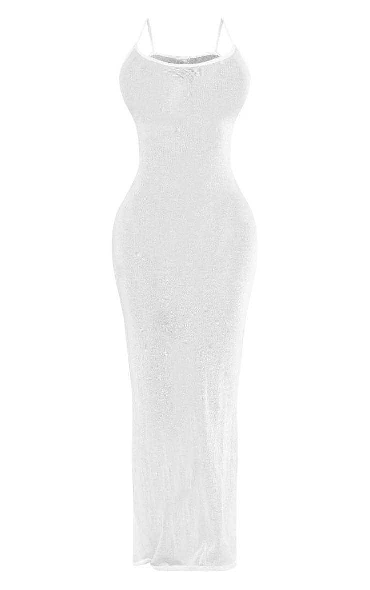 Make this shape white sheer strappy maxi dress your new season staple for your vacay wardrobe and beyond. Brought to you in a white hue sheer material with thin straps and a flattering maxi fit, what more could you ask for? Style this shape maxi dress over your fave bikini and just add sandals for a fierce look that is perfect for those poolside days, or why not work your styling techniques to make this dress suit your weekend plans?