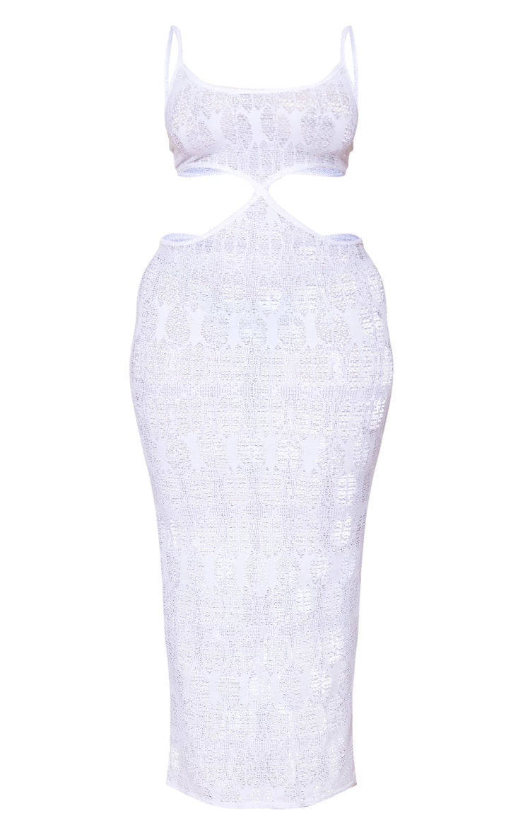 Give your wardrobe a seriously chic update with this shape white textured cut out strappy maxi dress. This dreamy dress is made from a white textured material with a cut out design that will make you center of attention wherever you go. In a midaxi length, you won’t be able to resist. Team with some clear heels and your fave accessories to elevate the look to new heights.