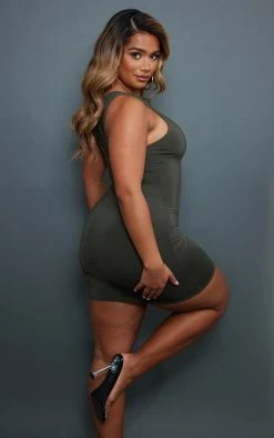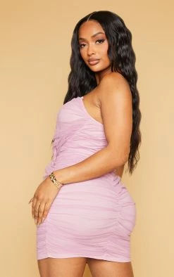 Shape Mauve Slinky Bandeau Ruched Side Frill Hem Bodycon Dress