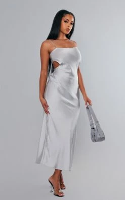 Get ready for any special occasion with this dreamy silver satin cut out binding detail strappy midi dress, you’re sure to have heads turning for all the right reasons doll. It features a silver hue satin material with a cut out design, thin straps and a midi length, how could you not be in love? Wear with clear slip-on heels and statement accessories for the ultimate glam look everyone will be talking about.