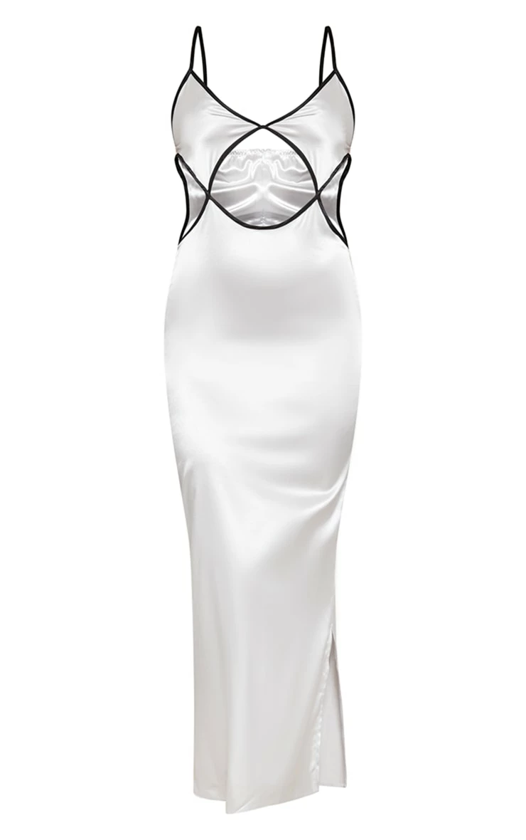 Dare to stand out from the crowd in this silver waist cut out strappy satin midaxi dress, it is the ultimate statement piece to show off your confident side with its bold silver satin material and cut out waist design, what’s not to love? With thin straps and a midaxi length you’re sure to be feeling your best. Sttle with heeled mules and your fave accessories for a look that will get everyone talking.