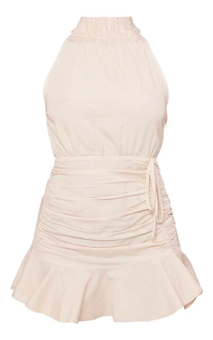 Enter the new season in style with this stone linen look shirred high neck frill hem bodycon dress. Brought to you in a stone hue linen look material with a chic high neckline, shirred detailing and a frill hem design that is brining all the glam, how can you not fall in love? Style this linen look bodycon dress with sandals and an oversized clutch for an effortlessly chic look worthy of your weekend plans.