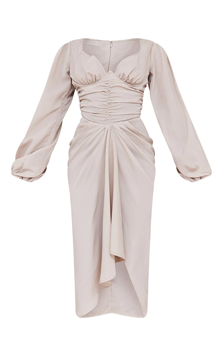 This dress is perfect for those special occasions doll. Featuring a stone material with ruched detailing and an underbust design, it is a must-have. For a look that will earn you some serious style points, wear with barely-there heels and dainty accessories.