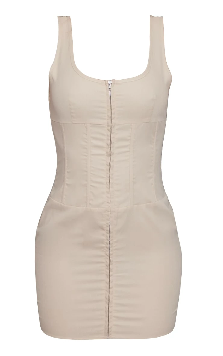 Look effortlessly chic in this stone woven seam detail zip front bodycon dress. Sure to take your weekend style to a whole new level, this zip front dress is perfect for you doll. It is made from a stone woven material with seam detailing and a zip front design. It’s figure-flattering bodycon style will have all eyes on you wherever you go. Simply add heels and statement accessories to complete the look.