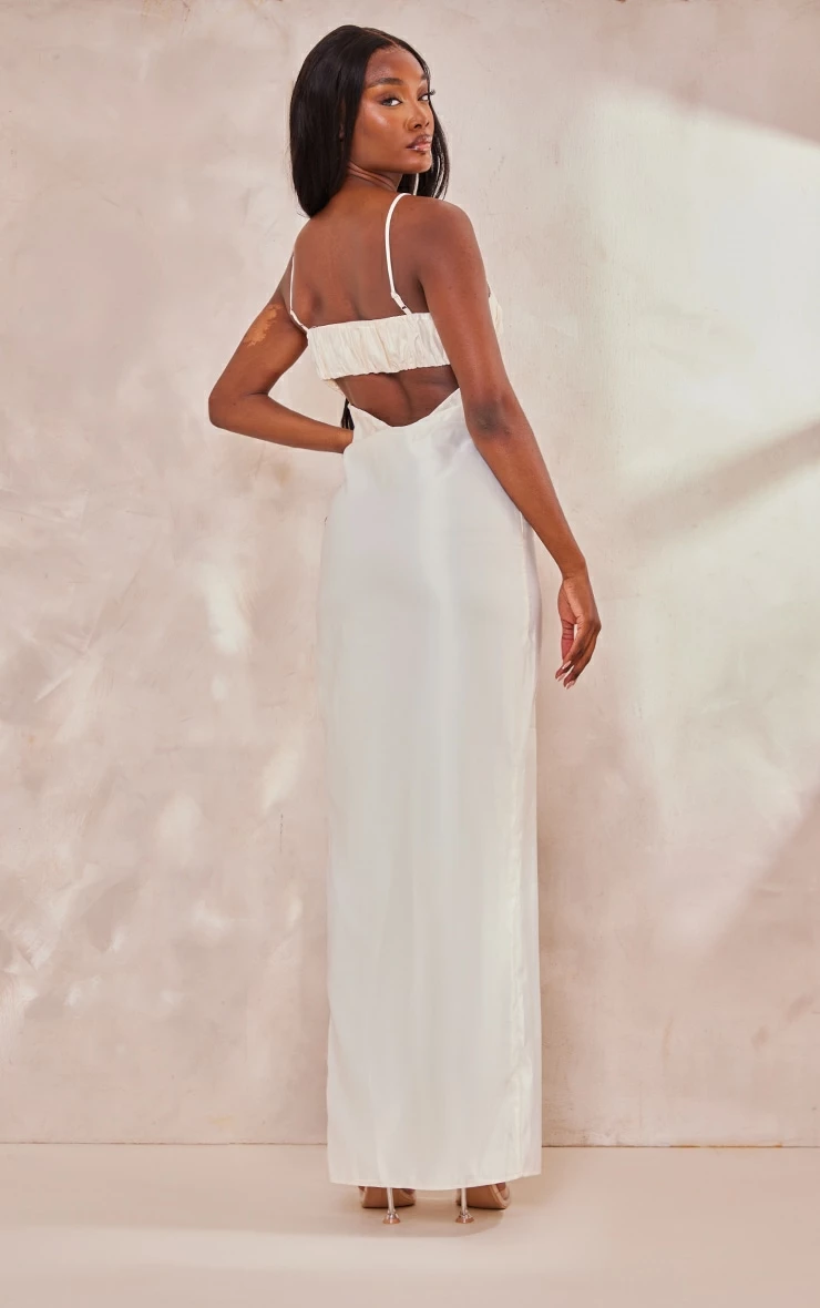 Get ready to look all kinds of glam in this tall cream ruched front satin midaxi dress, it is sure to be the answer to all your ‘what to wear’ dilemmas for your weekend plans and beyond. This dress features a cream satin material with a ruched front design and a midaxi length, how could you say no? Pair this tall midaxi dress with clear slip-on heels and your fave accessories for a look that everyone will remember.