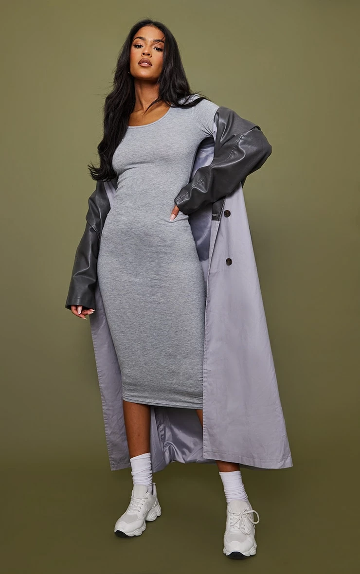 You are sure to make heads turn with this staple tall grey marl long sleeve maxi dress. We know it’s the piece you’ve been waiting for. Made using a grey hue material and a fit that is sure to flatter you’re unreal shape, what more could you need. Wear with a trench coat, sneakers and gold hue accessories for a simple and stylish outfit of the day that won’t go unnoticed.