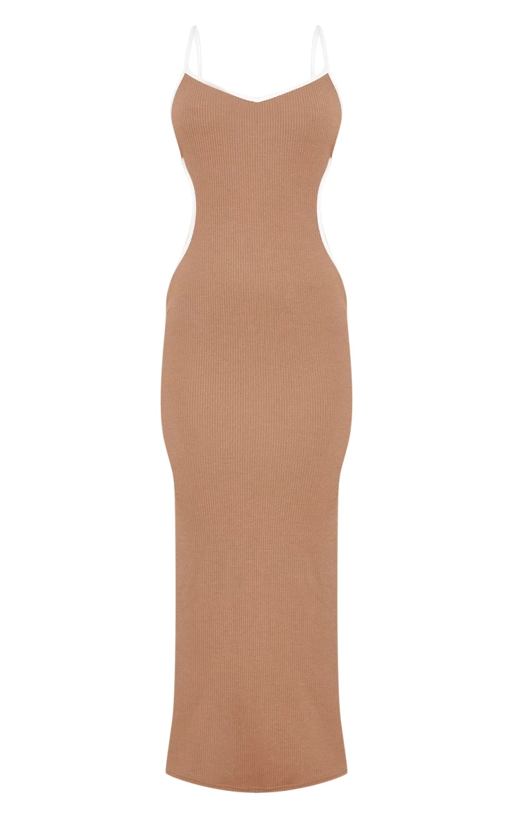 Hit refresh on your new season wardrobe with this unreal taupe textured ribbed contrast binding cut out maxi dress, whatever your plans this unreal piece will have you showing off your confident side. With a taupe textured ribbed material, chic contrasting binding and a cut out design, get ready to add this unreal maxi dress straight to your basket. Team with platform sandals and your fave accessories for an effortlessly glam look we just can’t get enough of.