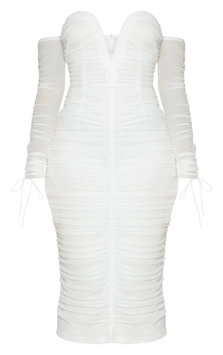 Add this LWD to your wardrobe for all those special events doll. Featuring a white mesh material with V bar detailing and bardot neckline, we are obsessed. Complete the look effortlessly by adding strappy heels and a cute mini bag.