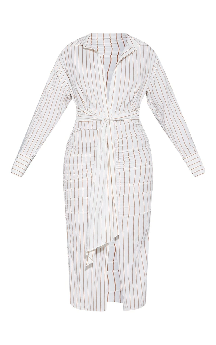 This dress is sure to be at the top of your new season hit list doll. Featuring a white stripe print material with a tie waist design and a midi length. Style with sandals and a clutch back for a next level look we’re loving.